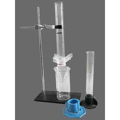 Комплектность: стеклянная трубка (цилиндр с делениями) – 1 шт., мерный цилиндр – 1 шт., воронка – 1 шт., фильтр (крупноячеистая сетка) – 1 шт., резинка – 1 шт., подставка – 1 шт., руководство по эксплуатации с методическими рекомендациями по проведению опытов: «Определение водопроницаемости почвы», «Определение высоты поднятия капиллярной воды», «Определение полной капиллярной влагоёмкости почвы» - 1 шт.