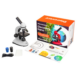 Микроскоп укомплектован объективами 4Х, 10Х, 40Х; револьверным барабаном для быстрой смены объективов; нижней и верхней подсветкой. Поворотом барабана и сменой окуляров и камеры изменяется увеличение микроскопа. Освещенность предметного стекла регулируется диафрагмой (расположена под предметным столиком).Для работы с микроскопом необходимы три батарейки АА по 1,5 В.