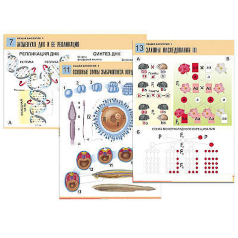 Перечень таблиц: 1. Уровни организации жизни. 2. Схема строения клетки. Многообразие клеток. 3. Фотосинтез. 4. Энергетический обмен. 5. Строение молекулы белка. 6. Схема биосинтеза белка. 7. Молекула ДНК и ее репликация. 8. Митоз – деление клетки. 9. Типы бесполого размножения. 10. Мейоз – образование половых клеток. 11. Основные этапы эмбриогенеза хордовых животных. 12. Типы постэмбрионального развития животных. 13. Законы наследования (1). 14. Законы наследования (2). 15. Формы наследственной изменчивости. 16. Формы модификационной изменчивости.