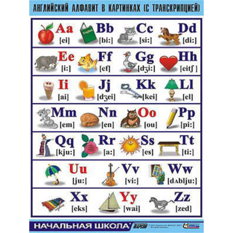 Таблица демонстрационная "Английский алфавит в картинках" (с транскрипцией) (винил 70х100)