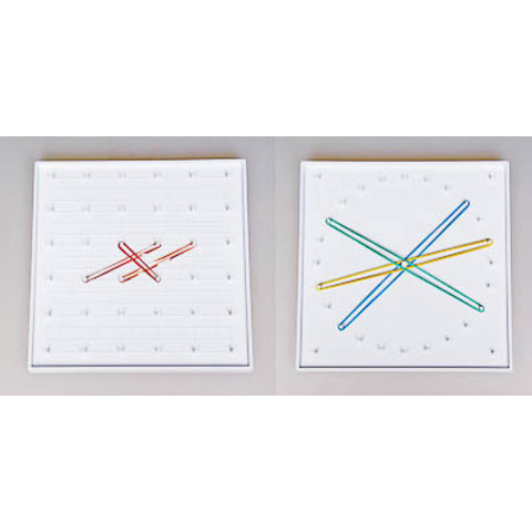 Изделие представляет собой пластиковый математический планшет размером 18х18 см, на одну сторону которого нанесена сетка из выступающих колышков шагом в 3 см, на другую – окружность диаметром 15 см и шагом в 2 см.