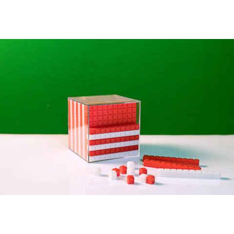 Модель представляет собой прозрачный пластмассовый куб со стороной 10 см, в котором уложено 9 пластин 10×10×1 см. Верхний слой состоит из 9 полосок 10×1×1 см и 10 элементов 1×1×1 см. Для лучшего восприятия элементы (пластины, полоски и кубики) красного и белого цветов чередуются.