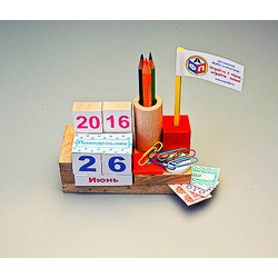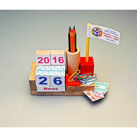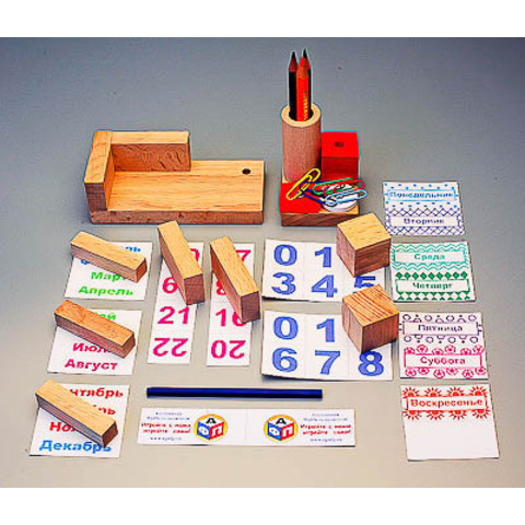 Игровой набор представляет собой настольный календарь с наклейками, которым можно пользоваться в течение нескольких лет. Наклейки приклеиваются детьми. С помощью набора дети в игровой форме знакомятся с календарем, а также некоторыми свойствами объемных фигур, позволяющих создать такой календарь. Календарь подходит для организации сюжетно-ролевых игр.