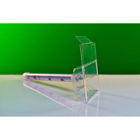 Ловушка представляет собой прозрачную емкость с выдвижной крышкой. Прозрачность дает возможность рассмотреть насекомое прямо в ловушке, не перекладывая его в другой сосуд. Длина ручки позволяет использовать любую ее часть в зависимости от размеров и прыткости насекомых (можно взяться за ручку непосредственно у основания ловушки или за самый край). Поскольку ручка тоже прозрачная, ее можно использовать для разделения некоторых насекомых в случае необходимости, вынув цветной вкладыш и поместив туда насекомое.