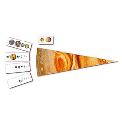 Комплектность: карточка с изображением сектора Солнечного диска – 1 шт., карточка с изображением сектора диска Юпитера – 1 шт., карточка с изображениями планет земной группы: Меркурия, Венеры, Земли и Марса – 1 шт., карточка с изображением Юпитера – 1 шт., карточка с изображением Сатурна – 1 шт., карточка с изображением Урана – 1 шт., карточка с изображением Нептуна – 1 шт., карточки с изображением веса человека на разных планетах – 4 шт., карточка с изображением Меркурия и Луны – 1 шт., карточка с изображениями спутников Юпитера – 1 шт., карточка с изображениями спутников Сатурна – 1 шт., карточка с изображениями спутников Урана – 1 шт., карточка с изображениями спутников Нептуна – 1 шт., руководство по эксплуатации с методическими рекомендациями – 1 шт.