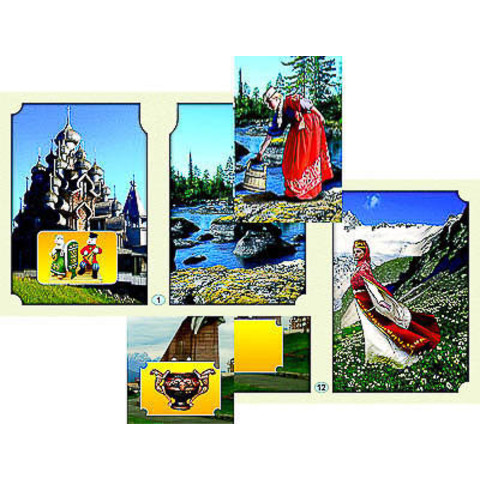 ​Настольно-печатная игра предназначена для организации игровой и познавательно-исследовательской деятельности детей в детском саду и дома. Может использоваться в качестве игрового и наглядного материала в следующих образовательных областях: речевое развитие, познавательное развитие, социально-коммуникативное развитие, а также во время логопедических занятий. Также может использоваться в начальной школе. Габаритные размеры в упаковке (дл.*шир.*выс.), см: 22*16*3. Вес, кг, не более 0,3. Комплектность: игровое поле - 12 шт., карточки - 24 шт., руководство по эксплуатации - 1 шт. Игра состоит из 12-ти полноцветных игровых полей формата А5 и 24-х полноцветных карточек. Карточки и игровые поля изготовлены из картона и ламинированы пленкой. Каждое игровое поле посвящено одному региону России. На карточках изображены женщины в национальных костюмах и памятники архитектуры, характерные для определенного этноса России; они служат продолжением изображений на игровых полях и содержат общие с ним детали фона. На карточках с изображением зданий (сооружений) дана врезка, на которой представлены предметы декоративно-прикладного искусства, являющиеся визитной карточкой данного народа.