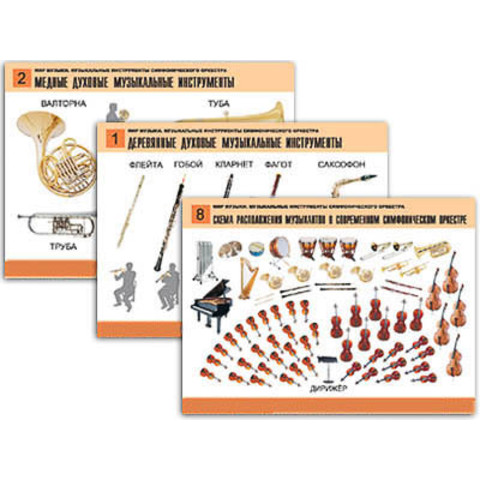 Комплект таблиц "Мир музыки. Инструменты симфонического оркестра" (8 табл., формат А2, лам.)