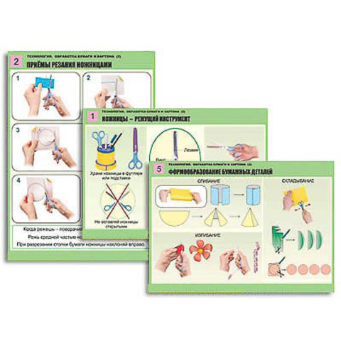 Комплект таблиц для нач. шк. "Технология. Обработка бумаги и картона-2" (8 таб, А1, лам,с разд.мат.)