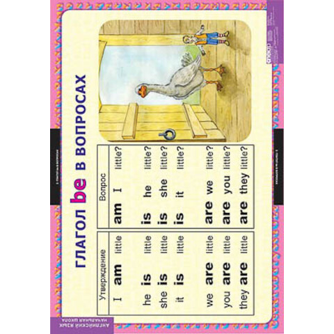 Учебный альбом из 8 листов. Формат 68х98 см. Глагол Be. Глагол Be в вопрсах. Глагол Be в отрицательных предложениях. Глагол Have. Глагол Have в вопросах. Глагол Have в отрицательных предложениях. Глагол Can. Глагол Must.