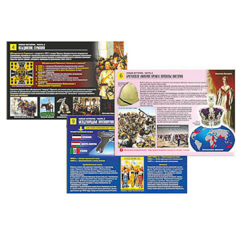 Таблицы: 1. Индустриальная революция. Технический прогресс. 2. Французская буржуазная революция. 3. Завоевательные войны Наполеона. 4. Объединение Германии. 5. Гражданская война в США. 6. Британская империя времен королевы Виктории. 7. Парижская коммуна 1871 г. – первая пролетарская революция. 8. Основные идеи общественно-политических учений ХIХ в. 9. Международные противоречия накануне Первой мировой войны. 10. Архитектура Индустриальной эпохи.