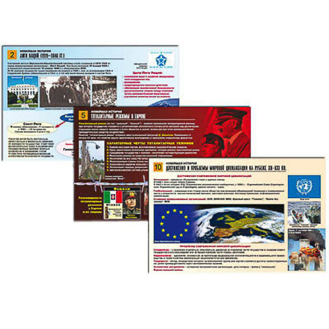 Таблицы: 1. Виды вооружения Первой мировой войны. 2. Лига Наций (1919–1946 гг.). 3. Авторитарные режимы в Европе. 4. "Новый курс" Франклина Рузвельта. 5. Тоталитарные режимы в Европе. 6. Вторая мировая война (1939–1945 гг.). 7. Холодная война. "Гонка вооружений". 8. Холодная война. Карибский кризис. 9. Холодная война. "Разрядка". 10. Достижения и проблемы мировой цивилизации на рубеже XX–XXI вв.