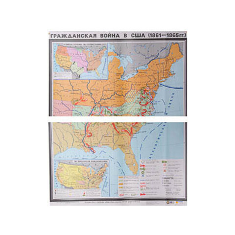 Учебная карта "Гражданская война в США в 1861 - 1865 гг." (матовое, 2-стороннее лам.)