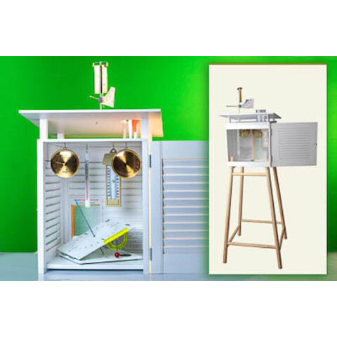 Комплектность: метеорологическая будка - 1 шт., термометр срочный – 1 шт., термометр максимальный–минимальный – 1 шт., гигрометр – 1 шт., барометр-анероид - 1 шт., осадкомер – 1 шт., флюгер с компасом – 1 шт., шкала Бофорта – 1 шт., стойки – 4 шт., перекладины – 8 шт. (4 вида по 2 шт.), шурупы – 16 шт., солнечные часы – 1 шт., учебное пособие «Комплект для исследования состояния окружающей среды» (автор И.Л. Марголина – 40 страниц – печать офсетная, обложка полноцвет.) – 1 шт., руководство по эксплуатации – 1 шт.