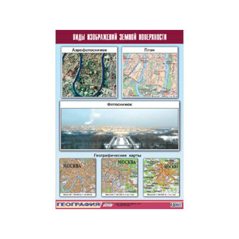 Таблица демонстрационная "Виды изображений земной поверхности" (винил 100х140)