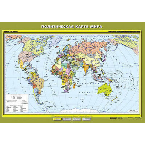 На карте отражены цветом все государства и территории мира, выделены столицы государств, центры владений, нанесены государственные границы, границы полярных владений. Различной фоновой окраской даны территории каждого государства мира.