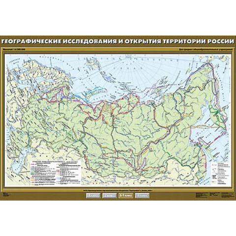 Учебн. карта "Географические открытия и исследования территории России" 100х140