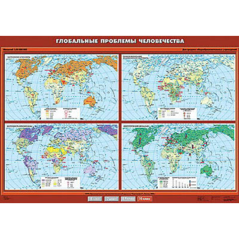 Карта состоит из четырех самостоятельных карт, характеризующих основные проблемы человечества: загрязнения атмосферы, голод, недоедание, младенческая смертность, отсутствие доступа к чистой питьевой воде, энергетический дисбаланс.