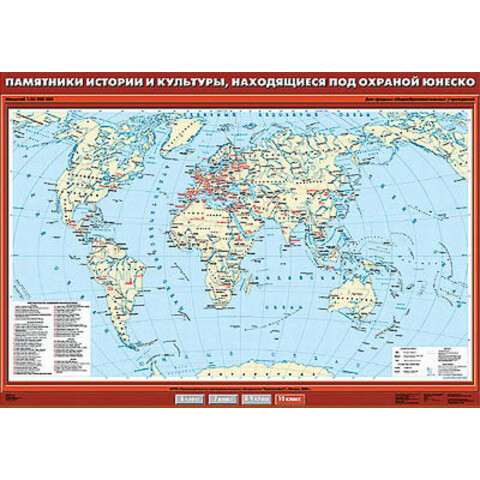 Учебн. карта "Памятники истории и культуры, находящиеся под охраной ЮНЕСКО" 100х140