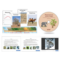 Комплектность: карточки с маркировкой D1–D55 – по 1 шт., шкала смены природных зон – 1 шт., магнитные кнопки для крепления шкалы – 6 шт., магниты с клеевым слоем – 20 шт., интерактивное приложение на электронном носителе – 1 шт., руководство по эксплуатации с методическими рекомендациями – 1 шт.