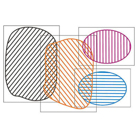 Модели различных множеств выполнены из плотной прозрачной пленки с прокрашенным контуром и штриховкой. Множества и их элементы крепятся на классную доску магнитными кнопками.
