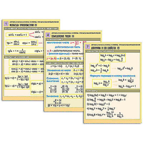 Комплект таблиц "Алгебра и начала анализа. Формулы. Преобразования выражений" (8табл, формат А1,лам)
