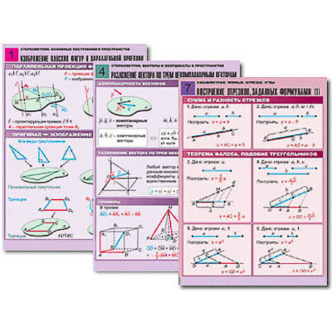 Комплект таблиц по всему курсу геометрии (100 табл., А1, полноцв., лам.)