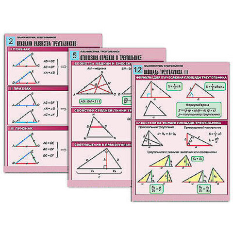 Комплект таблиц по геометрии "Планиметрия. Треугольники" (14 табл., формат А1, лам.)