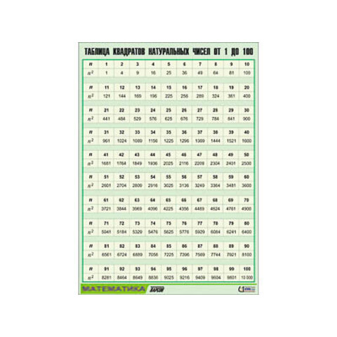 Таблица демонстрационная "Таблица квадратов натуральных чисел от 1 до 100" (винил 100х140)